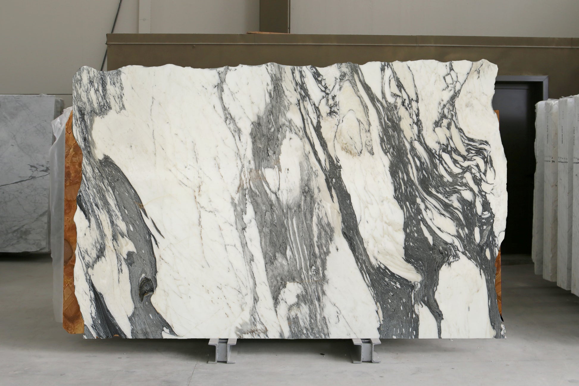 Material : STATUARIO APUANOSize : 305 x 195 x 2 cm 47 available slabs // 280 sq mt